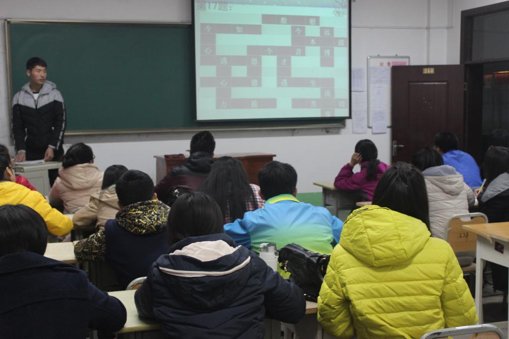 为了丰富老员工的课余生活,增强老员工的文化素养。11月9日晚上7点,由太阳成集团校团委主办,太阳成集团法律系团总支协办的“接成语,论英雄”太阳成集团第十届老员工读书节暨成语接龙比赛初赛在文科楼顺利举办。计算机与信息工程系员工积极参与此项活动,经过系内选拔,共选拔出13名选手参加本次成语接龙比赛。