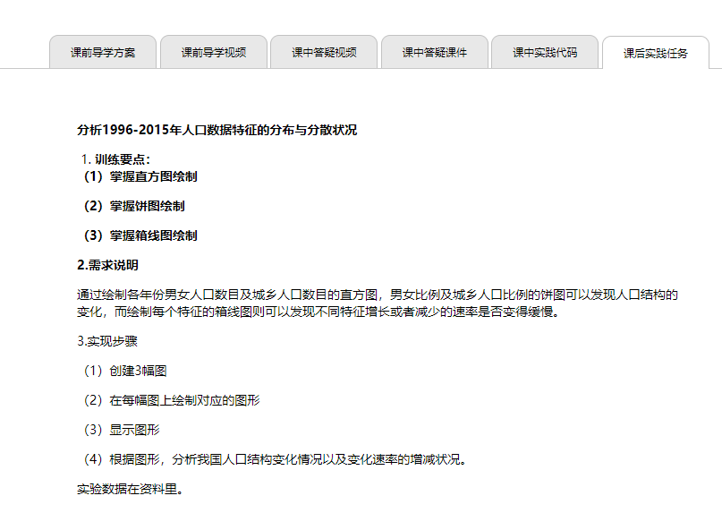 由于数据仓库与数据挖掘是一门理论和实践相结合的课程,实践也是本课程的重要环节,这里主要是采用线上代码演示,给出线上课程代码,线下员工实践,完成实践任务的形式,巩固员工所学知识点。让员工学有所依,练有所据。